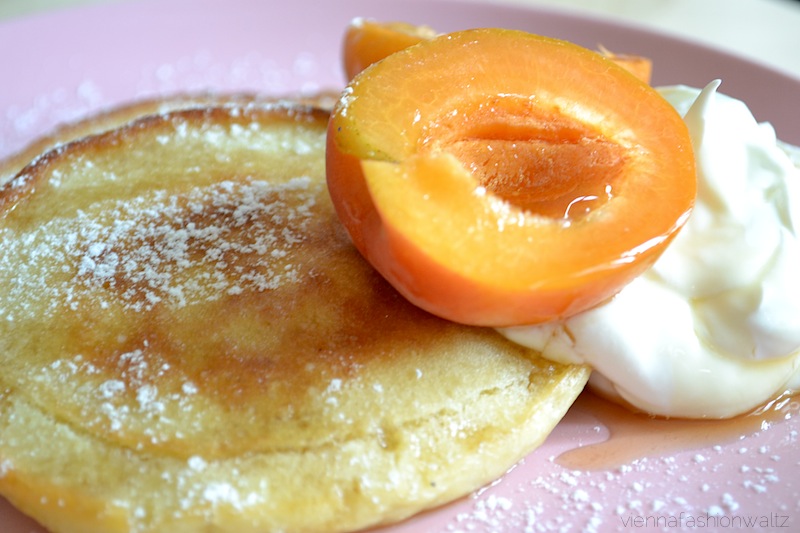 Und weil ohne Süßes bei mir einfach gar nichts geht, hab ich mal wieder 9: Pancakes gezaubert, diesmal aber mit griechischem Joghurt und frischen Marillen *zauberhaftlecker*.