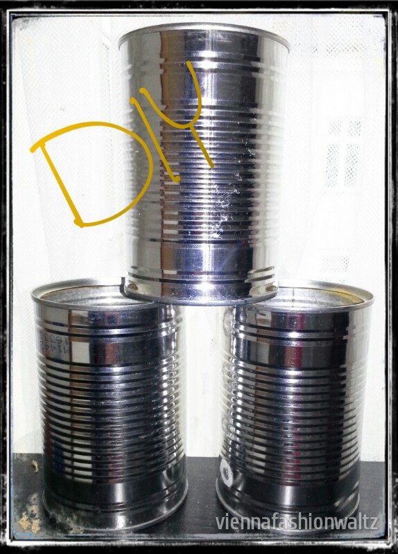 Die leeren Konservendosen gut waschen und innen die scharfe Kante glatt schleifen, das geht auch sehr gut mit einer alten Nagelfeile. Ihr könnt die Kante auch abkleben. Die Dosen mit Sprühlack in eurer Wunschfarbe einfärben. Mir gefällt das „Dosennatursilber“ auch sehr gut!