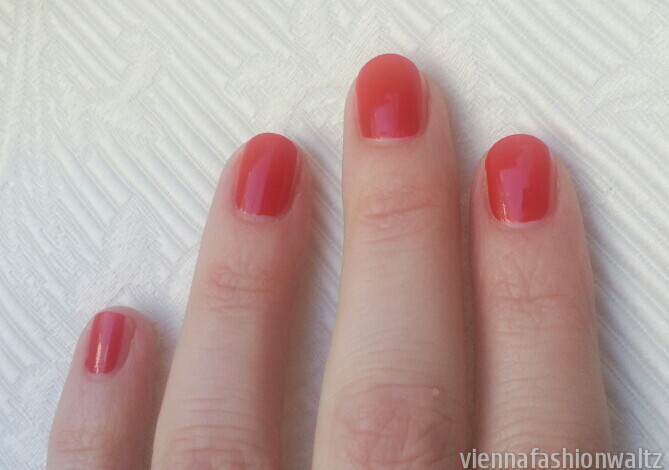 Der Nagellack trocknet super schnell und da er ausreichend Farbpigmente beinhaltet reicht auch eine Schicht. Die Haltbarkeit ist bei einer Schicht nicht so gut. Bei zwei Schichten verlängert sich leider die Trockenzeit von einer Minute auf 10 Minuten, ich trage daher die zweite Schicht erst am nächsten Tag auf, dann muss ich nicht lange warten. Mit zwei Schichten oder einem Überlack hält der Lack dann eine Woche und überlebt auch den Abwasch mit Bravour!