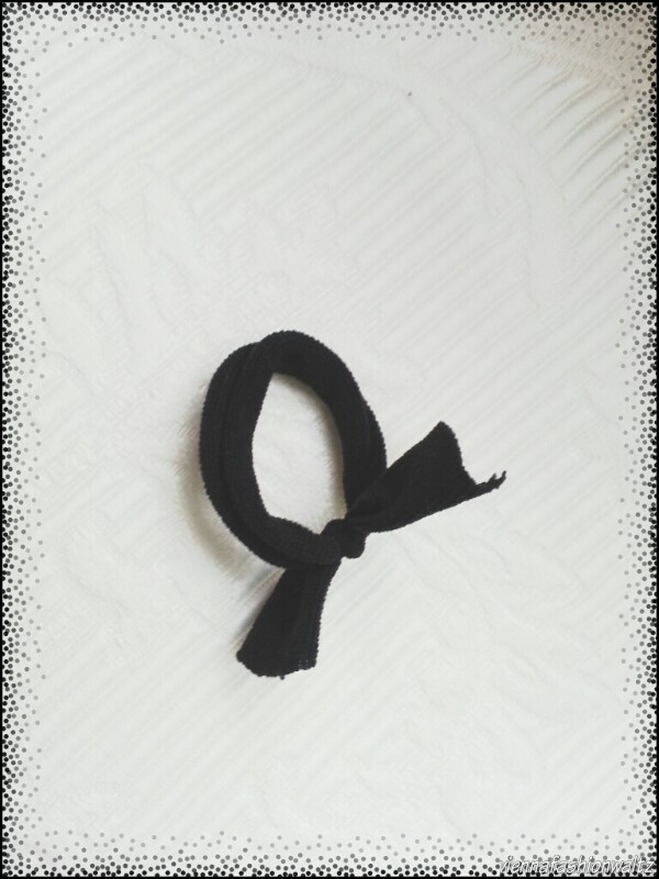 Von der Strumpfhose 1,5 bis 2 cm breite Streifen schneiden und das war dann schon der ganze Aufwand! Für kleinere Haargummis kann man den Streifen halbieren und zusammenknoten!