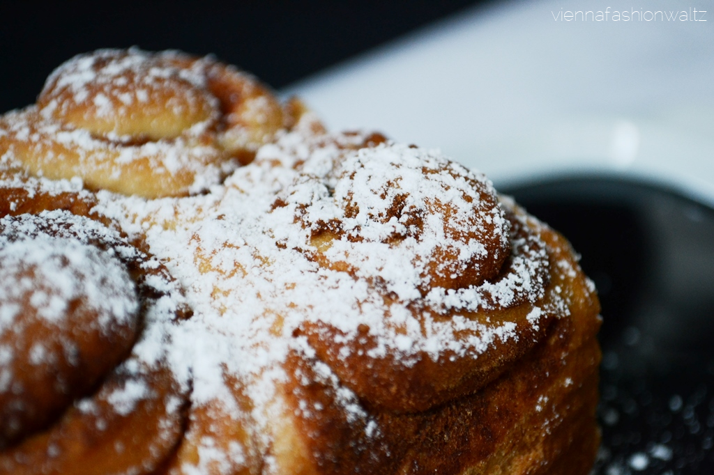 Wer es besonders süß mag, kann die Zimtschnecken noch mit einem dickflüssigen Zuckerguss überziehen (einfach Staubzucker mit Zitronensaft oder Rum glatt rühren)!