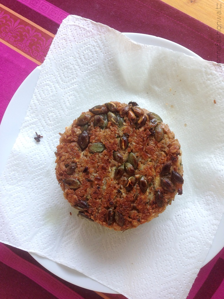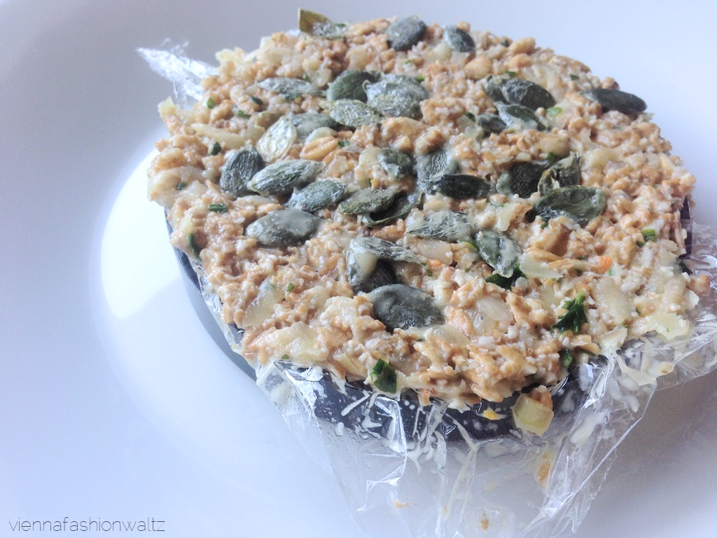 Entweder mit feuchten Händen die Masse zu Laibchen formen oder eine Burgerpresse zur Hand nehmen … kleiner Tipp am Rande: Die Burgerpresse mit Frischhaltefolie auslegen, dann lassen sich die Burger bestens aus der Form nehmen. Vor dem braten noch kurz in den Gefrierschrank, dann ist die Chance, dass die Laibchen zerfallen geringer!