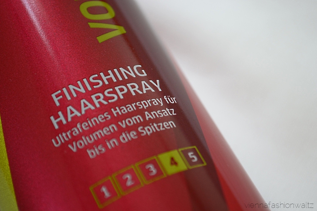 Ein wenig Fülle ins Haar bringen – geht ganz einfach in dem die Haare mit den Händen geknetet werden und währenddessen mit Volumen Haarspray von unten nach oben gesprüht wird. Oder wer Zeit und Lust hat, kann auch mit dem Lockenstab bzw. Glätteisen Locken formen und leicht frisieren. Vielleicht ist der Haarspray euch schon bei meinen Bloggerkolleginnen aufgefallen, für diese Frisur eignet er sich bestens, denn der Vidal Sassoon Finishing Haarspray (Stärke 4) hält was er verspricht und nicht nur als Finish …