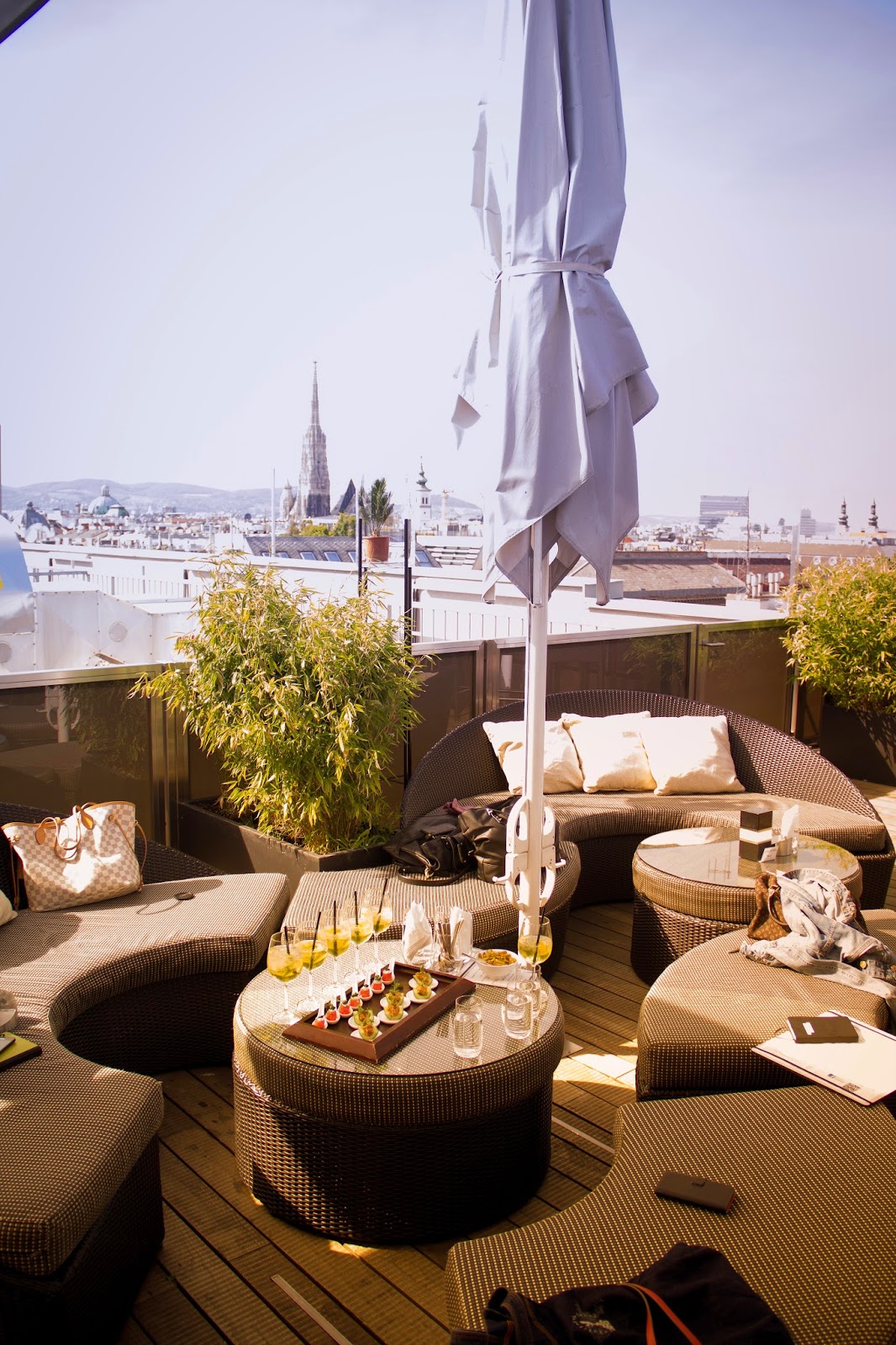 Als nächstes erklimmten wir die Höhen der Sky Bar. Der Steffl ganz nahe, aber der Blick in und über die Dächer erinnerte mehr an den shabby chic in Frankreich. Personal solala und dann auch noch ein Umbau, zwar nicht direkt in der Bar, aber im Restaurant, dafür hätte ich mir mehr Komfort & Service erhofft. Die absolut zentrale Lage mitten auf der Kärntner Straße macht das Lokal allerdings zur perfekten After-Shopping-Wanna-Have-A-Drink-Bar.