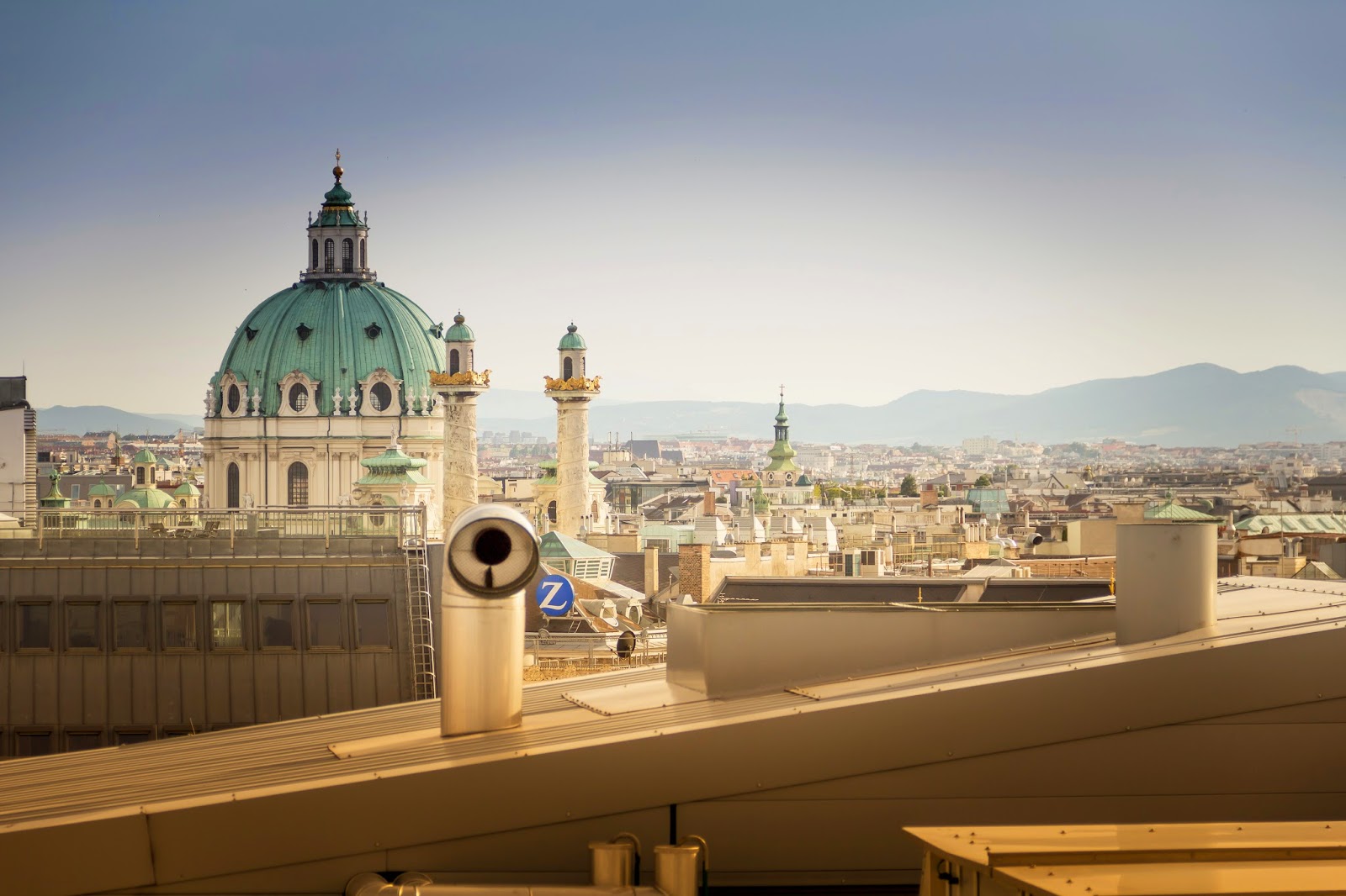 Einmal umgedreht und schon wieder ist eine Woche rum! Wir wollen es uns nicht nehmen lassen und zeigen euch daher – spät aber doch – noch ein paar gesammelte Eindrücke aller von uns besuchten Dachterrassen über den Dächern von Wien.
