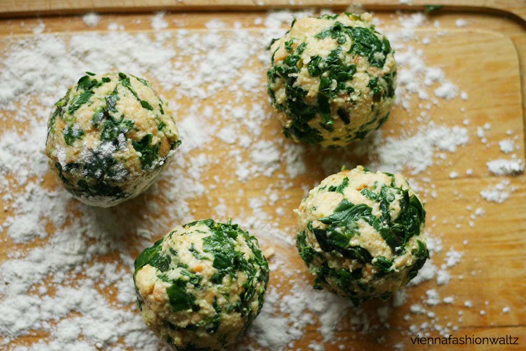 Die spannende Woche rund ums 5-Gänge-Menü á la Figlmüller, geht nun bei uns weiter. Nach Beef Tartar als Vorspeise von Steirerblut&Himbeersaft und Kürbiscremesuppe bei myimpressions4u kochen wir heute für euch eine weitere Hauptspeise. Da wir drei bekanntlich ja Vegetarierinnen sind, wird die Hauptspeise fleischlos sein. Bei uns gibts Spinatknödel, viele werden sich jetzt denken, was nur eine Beilage! Ja, ihr habt recht Knödel sind meistens eine Beilage, aber habt ihr schon mal dran gedacht die Knödel mit flüssiger Butter zu begießen und frischen Parmesan darüber zu streuen? Perfekt passt auch grüner oder gemischter Salat dazu.