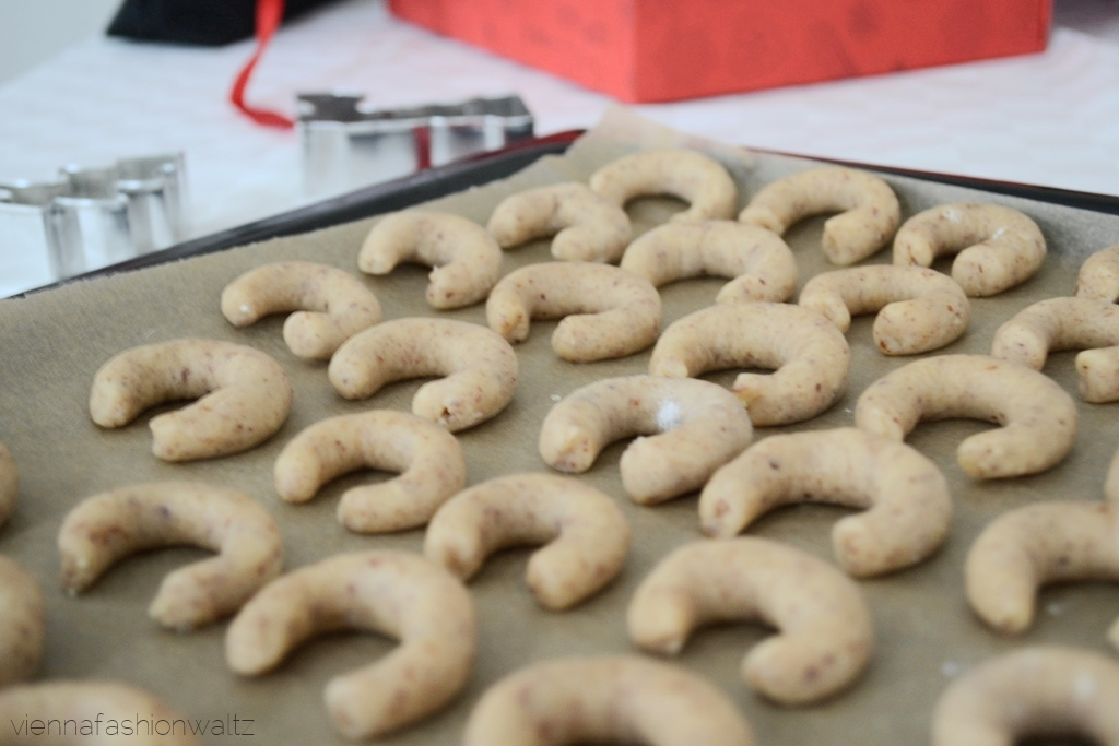 Die dm Box ist ein kleiner Traum, mit großer Wirkung, denn darin befanden sich hochwertige Produkte von Alnatura – quasi ein Backset von Mehl und Zucker bis hin zu Keksausstechern. Mein Liebster und ich haben den Backofen angeworfen und die Zutaten für Vanillekipferl in eine Schüssel gegeben – Rezept siehe hier. Alles durchgeknetet, zu einer Kugel geformt und für 30 Minuten kühl gestellt. Dazwischen war kuscheln und knutschen angesagt. Ratz fatz war die halbe Stunde um und wir wagten uns an das Vanillekipferl formen.