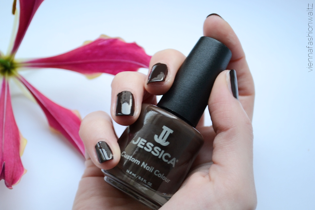 Der Jessica Cosmetics 896 Mad for Madison stammt aus der Autumn in NY Kollektion, welche lediglich 6 aussdrucksstarke und lebhafte Farblacke umfasst. Schwarzbraun ist eigentlich die richtige Bezeichnung für diese Nagellackfarbe und daher für mich ganz klar nicht nur ein absoluter Herbstklassiker.