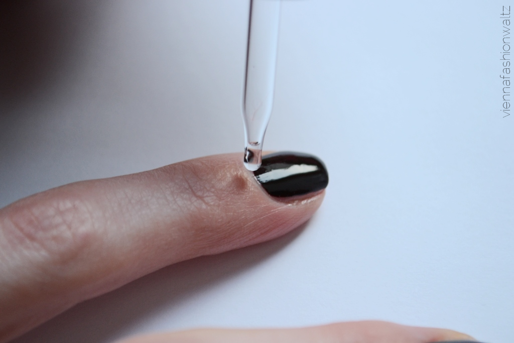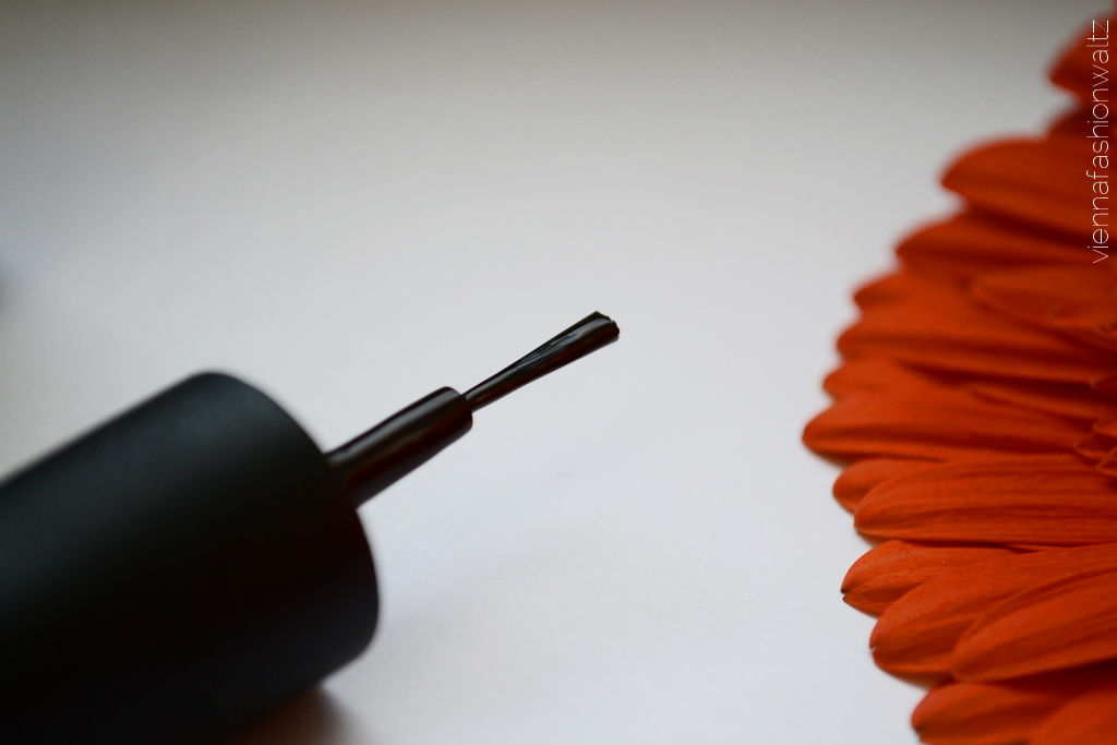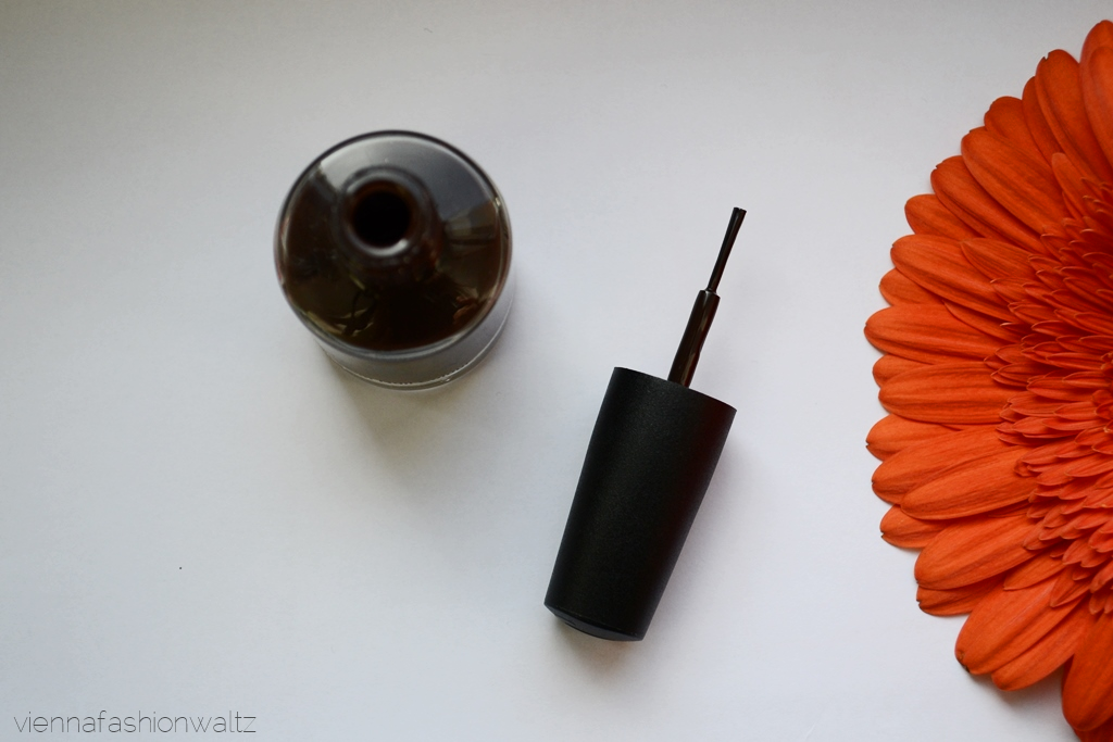 Der Nagellack ist sehr zähflüssig, daher lässt er sich nicht so leicht dünn auftragen. Was aber auf der einen Seite positiv ist, da er bereits mit der einen Schicht bereits deckend ist, auf der anderen Seite allerdings etwas länger zum Trocknen braucht. Ein passender Überlack gleicht dies allerdings aus. Mit knappen 15 Minuten Wartezeit liegt der Nagellack jedoch gut im Mittelfeld. Einziges kleines Manko für mich ist der recht schmale Pinsel, wobei sich weder Streifen noch Rillen dadurch ergeben haben, also kann recht fein damit aufgetragen werden.