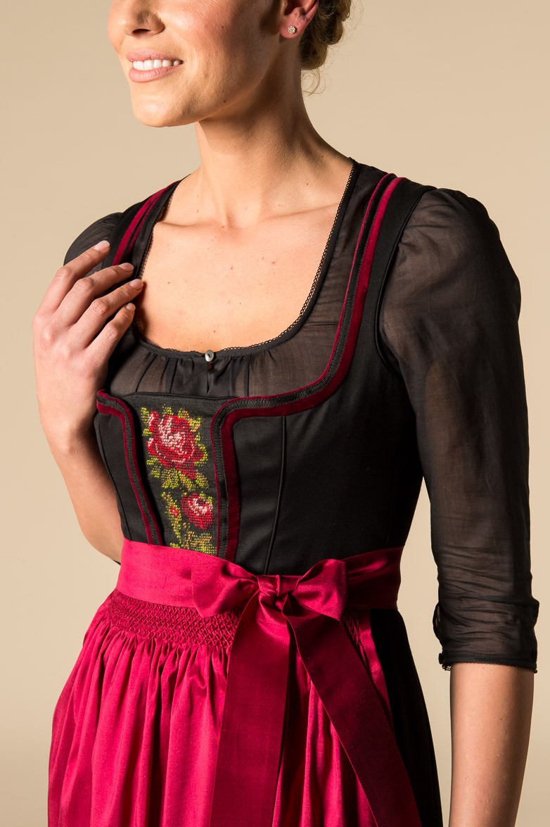 Wer es besonders elegant und glamourös mag, trägt zum Dirndl eine schwarze Bluse. In der Ballsaison ganz und gar nicht gern gesehen, ist ein Dirndl ohne Bluse oder ein zu kurz geratenes Röckchen (Länge: mind. kniebedeckt)!