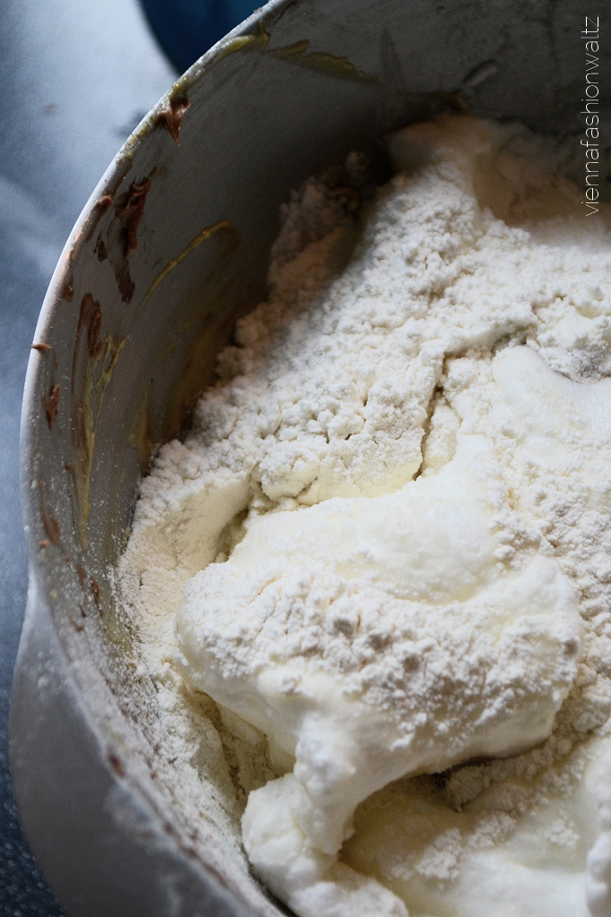 In einer Schüssel die zimmerwarme Butter mit Staubzucker und Vanillemark (wenn nicht vorhanden, dann ist auch Vanillezucker als Ersatz möglich) cremig rühren. Eidotter nacheinander langsam einrühren und alles zu einer dickschaumigen Masse schlagen. Schokolade im Wasserbad schmelzen lassen und unterrühren. Eiklar steif schlagen, dabei den Kristallzucker einrieseln lassen und so lange weiter schlagen, bis der Schnee schnittfest und glänzend ist. Schnee auf die Dottermasse häufen, das Mehl darüber sieben und mit einem Kochlöffel alles vorsichtig vermengen.