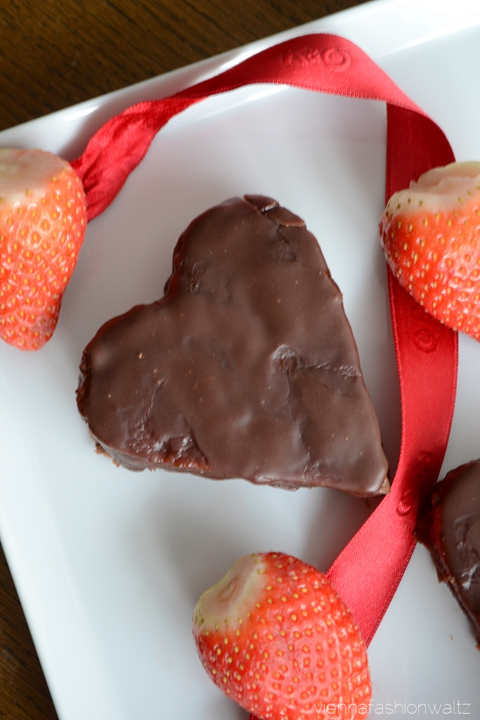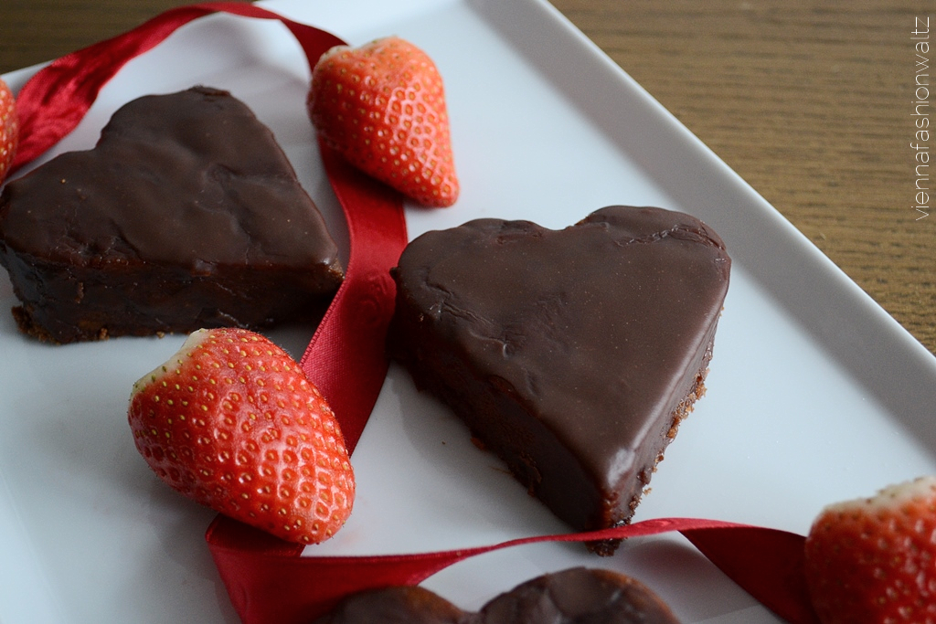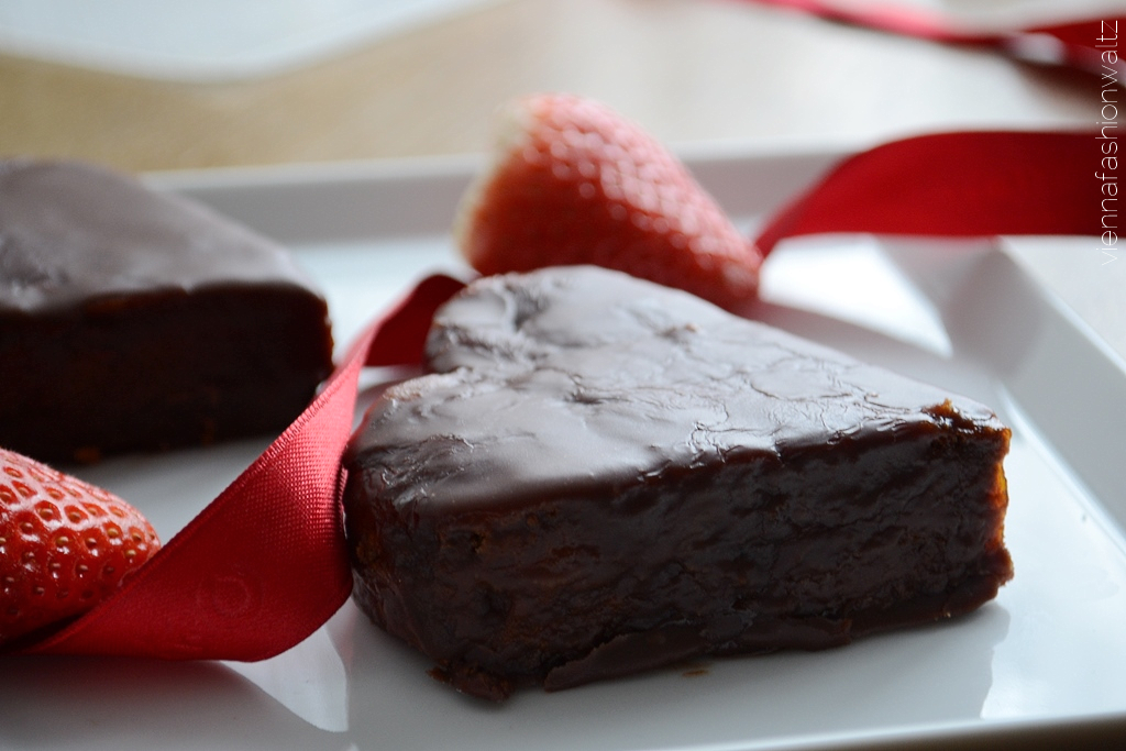 Da Herzen für den Valentinstag und auch für den Muttertag besonders gut passen, habe ich den fertig gebackenen und überkühlten Tortenboden – wie unten beschrieben – in zwei Hälften geteilt, mit einem Herzausstecher ausgestochen, mit Marmelade bestrichen und mit der Schokoglasur umhüllt. Eine Meisterbäckerin bin ich zwar noch nicht, aber Übung macht den Meister!