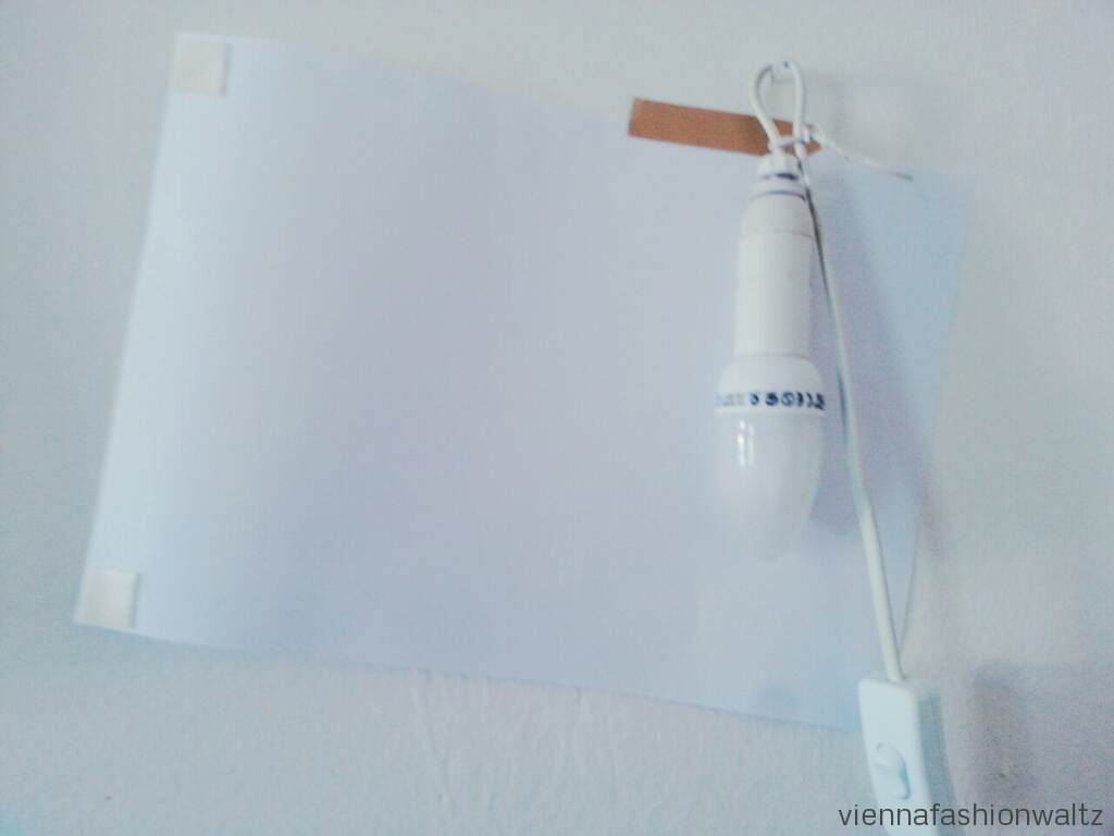 Ihr benötigt ein Lampenkabel mit Fassung, Papier und doppelseitiges Klebeband.