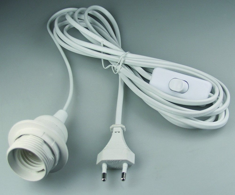 Oberhalb der Fassung das Kabel in eine Schlaufe legen und mit Draht zusammenbinden. Das Kabel auf einen Nagel hängen.
