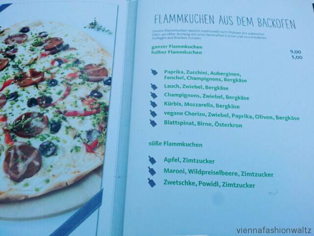 Im Wiener Kunsthaus im TIAN Bistro bekommt man leckere Flammkuchen, alles natürlich vegetarisch und vegan.