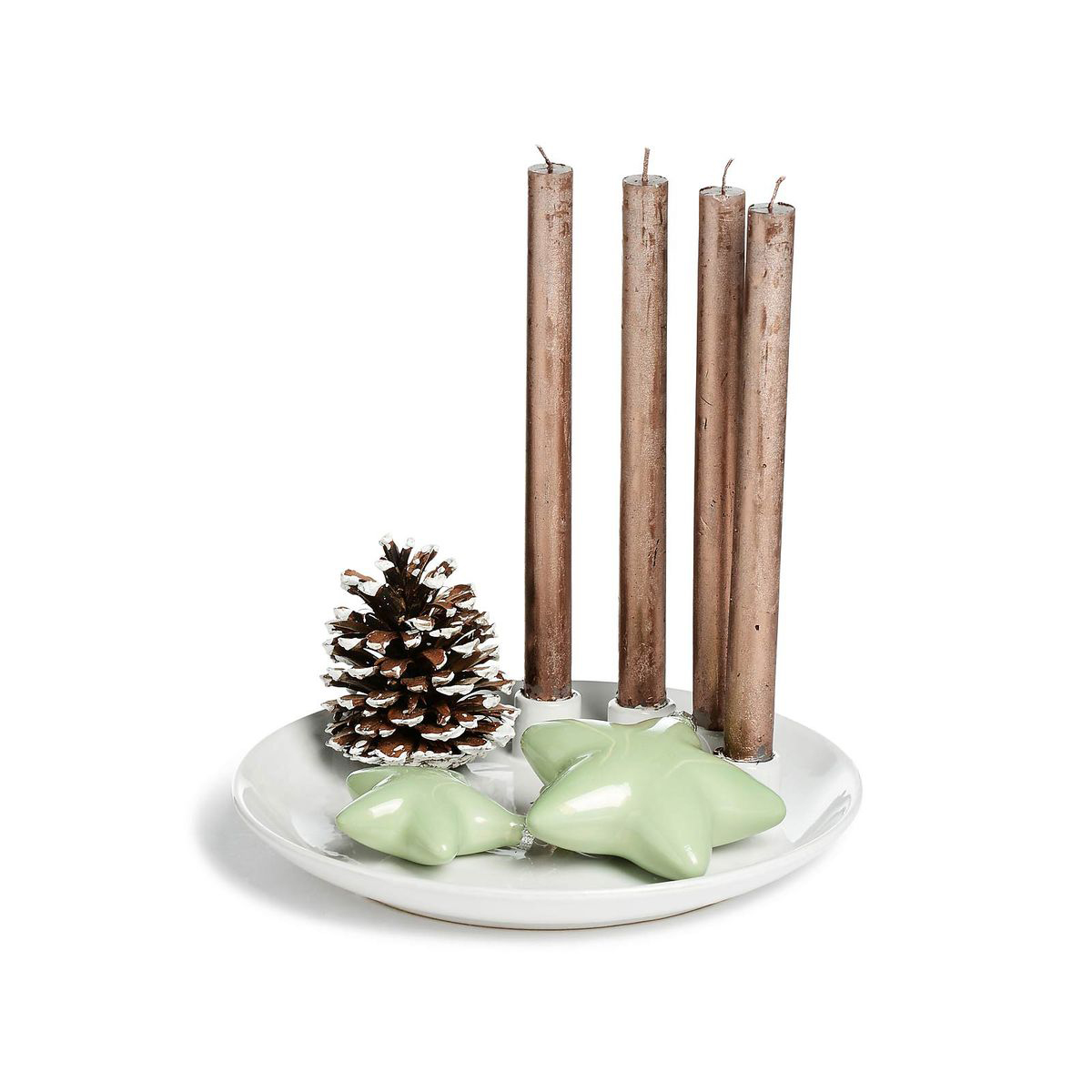 Bei Depothaben wir hübsche Teller und Kerzenständer entdeckt die sich nicht nur zu Weihnachten gut machen. Mit Sternen und Kugeln dekoriert werden die edlen Kerzenhalter vorübergehend zum Adventskranz!