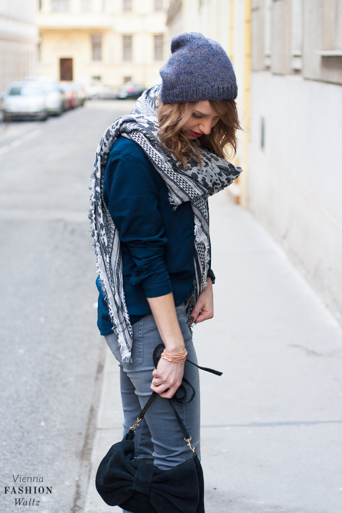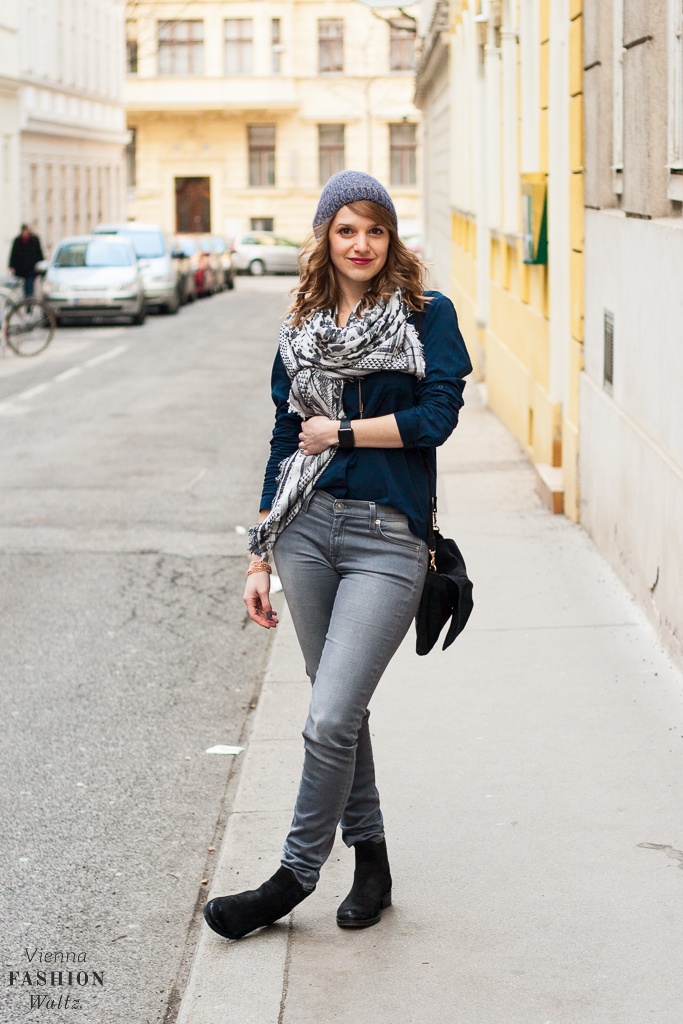 Bluse: Esprit // Jeans: 7 for all Mankind (similar here) // Boots: Geox // Schal: H&M (similar here) //