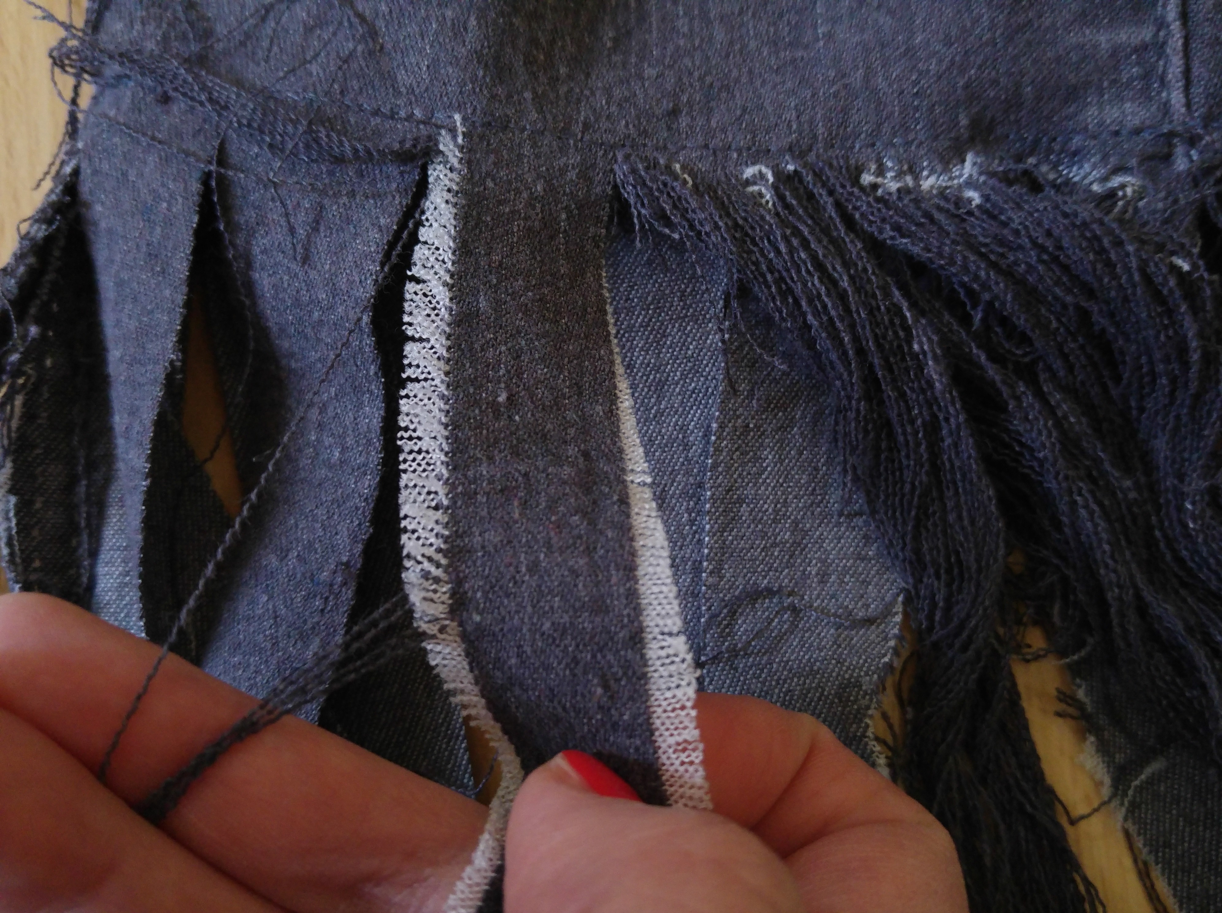 - Bezeichne die auszufransende Partie, diese in ca. 1cm breite Streifen schneiden.