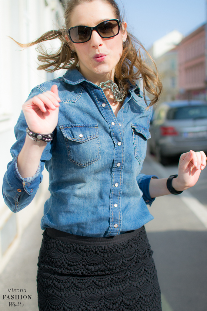Das Jeanshemd ist im Moment mein absolutes Lieblingsteil im Kasten. Ob zur Jeans oder zum Rock es lässt sich super kombinieren. Meist trage ich es allerdings zu etwas schwarzem, wie auch bei diesem Outfit. Über den Allover-Denim-Look habe ich mich bis jetzt noch nicht drüber getraut, vielleicht aber jetzt dann, wenn die Frühlingsgefühle kommen.