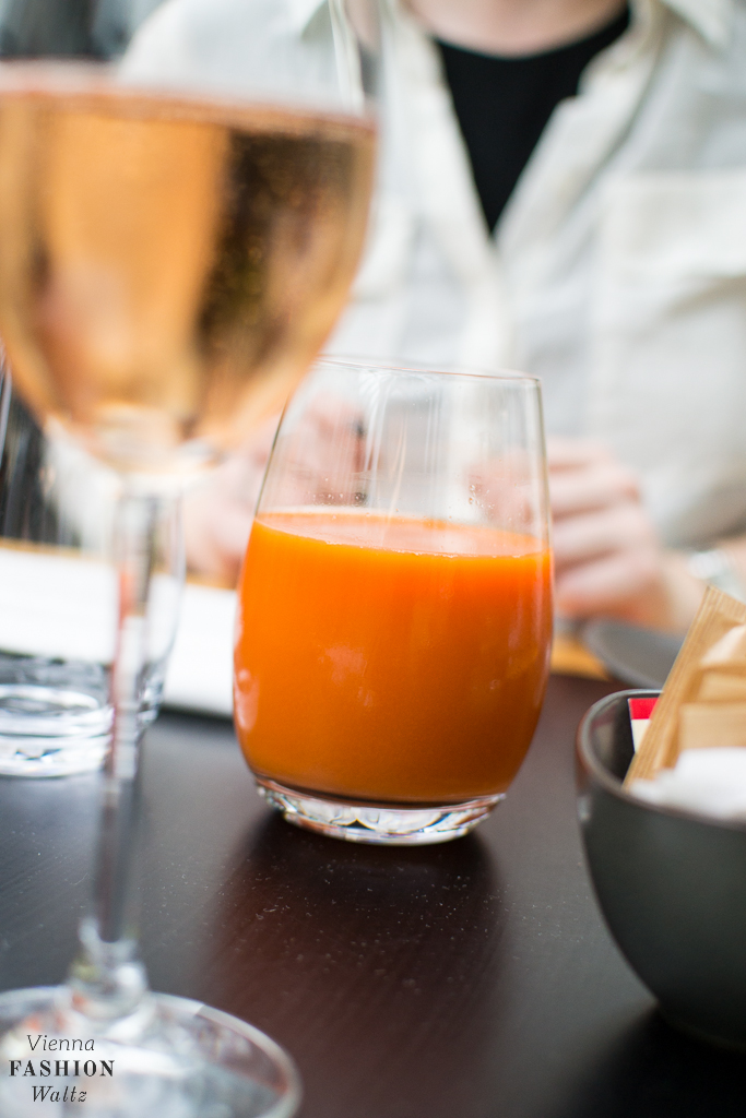 Die Frühstückskarte ist sehr umfassend und die Entscheidung fiel uns nicht leicht. Leckere Säfte, Müsli, Porridge, Käse, Dampfofensemmerl, Eier im Glas, Omelette, Humus und Waffeln stehen dem Frühstückerherz zur Auswahl. Also haben wir mal gemütlich mit Kaffee, Karotten-Ingwersaft, Selleriesaft und einem hervorragenden Rosé Champagner angefangen.