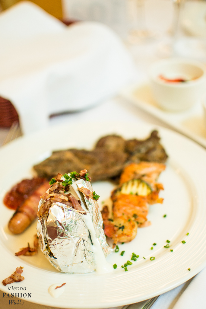 Wir kosteten uns durch die Antipasti, den Fetakäse und den Mozzarella. Die Auswahl an Salaten war sehr groß und unsere Teller füllten sich. Als Vegetarier hat man es beim Grillen meistens gar nicht so leicht. Bei diesem Grillbuffet gibt es jede Menge gegrilltes Gemüse, Maiskolben und Kartoffeln. Für uns hätte es noch Halloumi geben können, dann wäre es für uns als Vegetarierinnen perfekt gewesen.