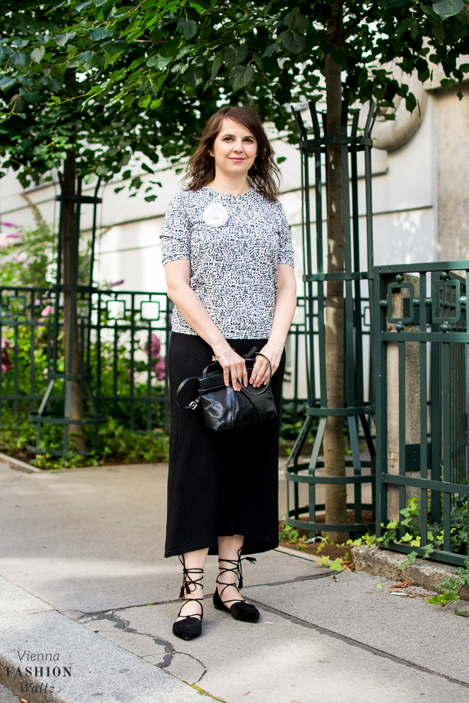Kleid/Midiskirt: H&M // Kurzarmpullover: COS (ähnlicher hier) // Tasche: Marc Jacobs // Lace up Ballerinas: Kennel & Schmenger // Armreifen: La Viida
