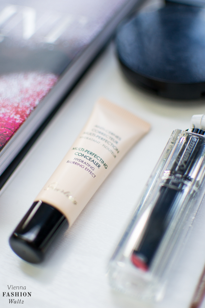 Hautbildverfeinerndes Fluid: Lavera // Nagelpflegestift: alverde // Concealer*: Guerlain // Puder: Dado Sens// Augenbrauenstift: Maybelline // Lidschatten*: alverde // Wimperntusche: Lavera // Lippenstift Guerlain Nr.20*: Douglas