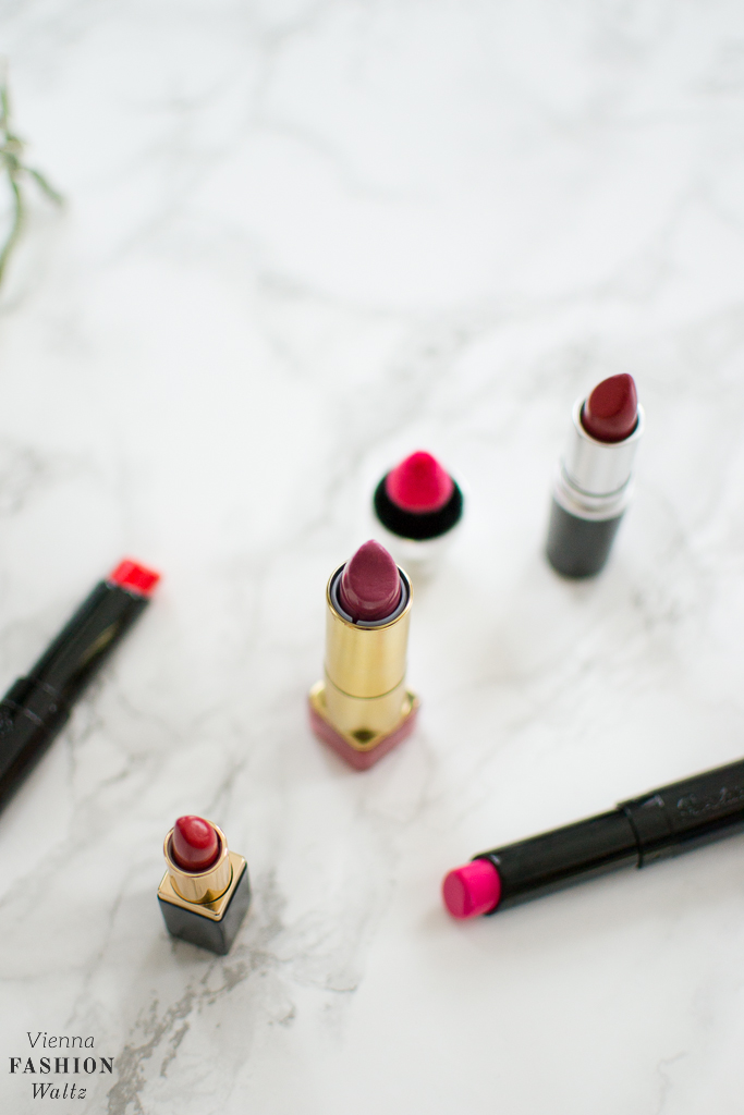 Einmal eine Farbe gefunden, habe ich auch schon mit anderen Tönen herum probiert und experimentiert. Mit ein paar Tipps & Tricks fällt das Auftragen gleich leichter, ohne alles auf den eigenen Zähnen zu haben. Als angehende Lipstickqueen habe ich meine persönliche Routine eingeführt, um untere anderem die Haltbarkeit zu verlängern. Denn mein Mann lässt sich meine Küsse auf keinen Fall entgehen …