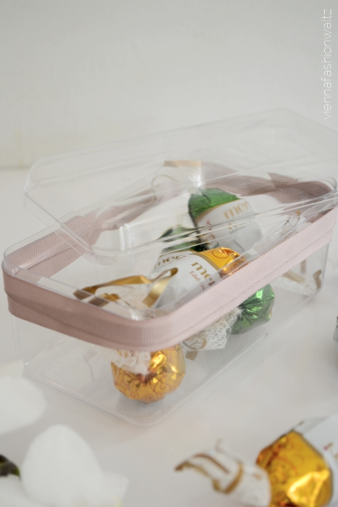 Rocher-Schokolade-Dosen eignen sich auch besonders gut als modernes Osternest! Je nach Lust und Laune die Dose mit Süßigkeiten befüllen und dekorieren, zum Beispiel mit einem Glossybox-Band, buntem Klebeband oder Spitze.